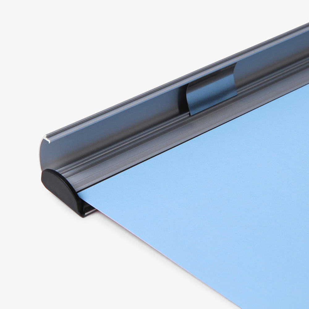 Hanging on the wall, at shop windows or just free in space; you can go in all directions with the Postersnapper! Clamp your poster in a lightweight snap rail and make your advertisement visible. Snap rails with foam rubber grip tape prevent your poster from slipping out. An affordable rails with a professional look. Go for the postersnapper for a fast and cheap poster presentation!