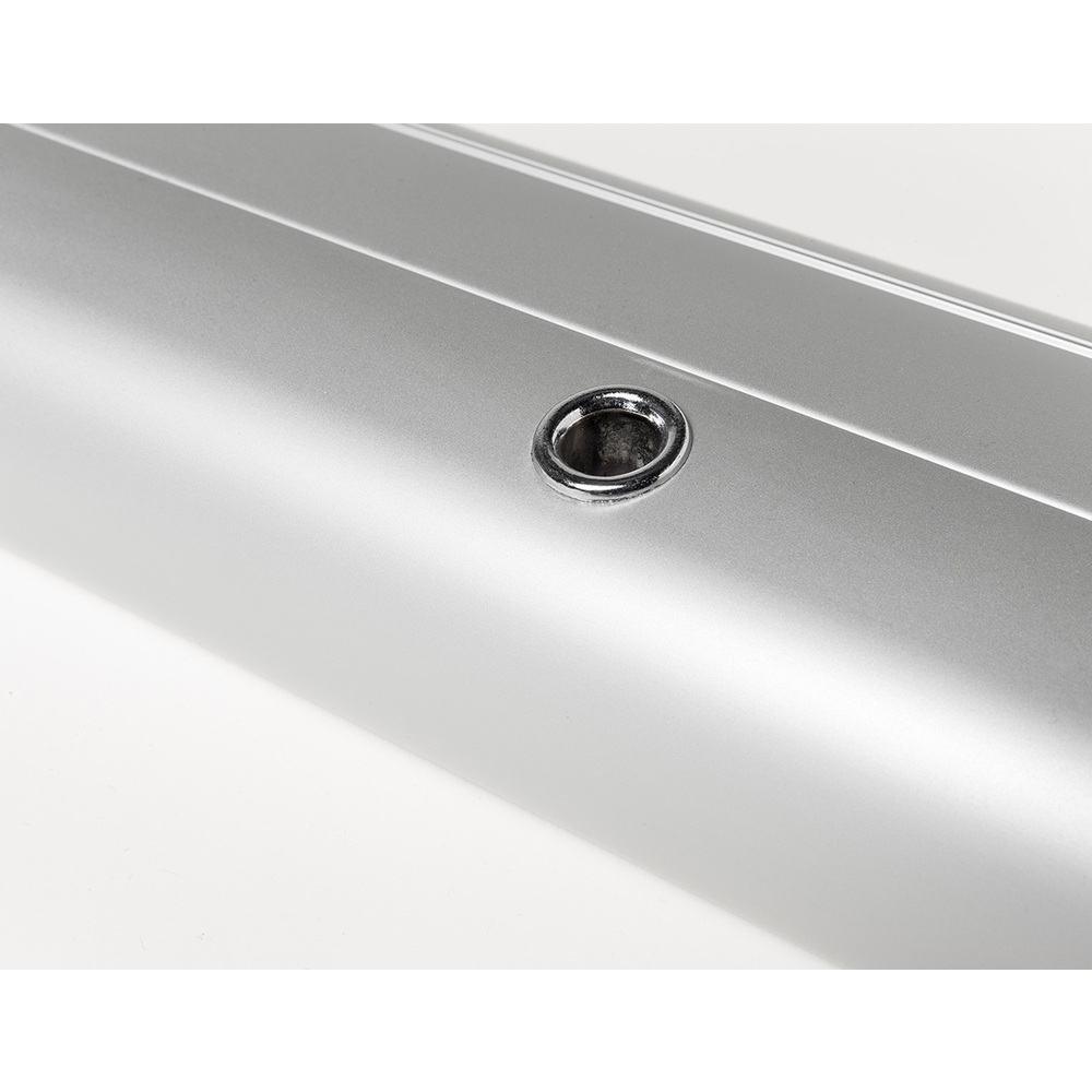 - Chroom coloured plastic side caps