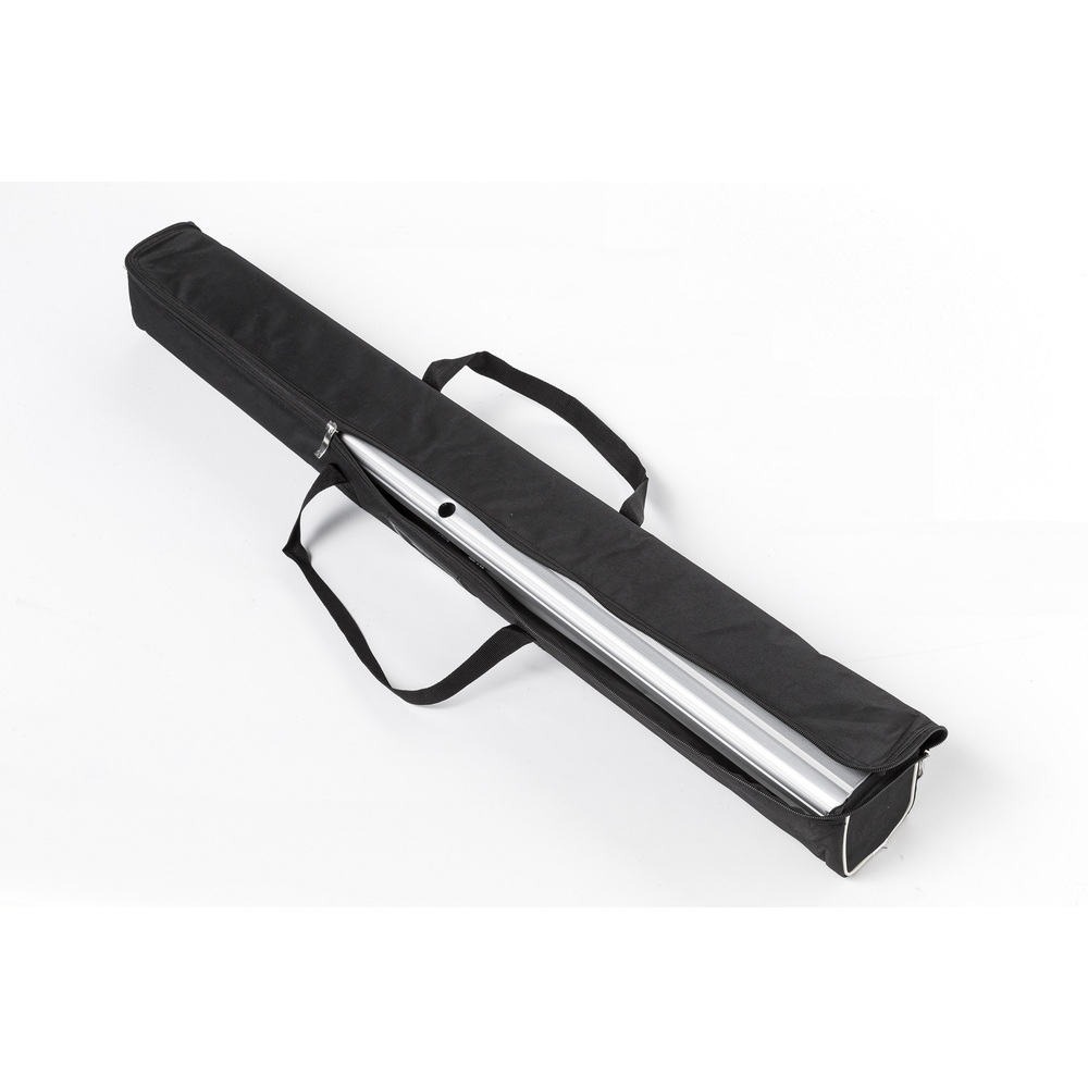 Make your brand stand out with the Roll-Banner Plus. Its sleek silver design with stylish black accents adds a modern touch wherever it goes. The reinforced pole holder and extra-long galvanised steel plate on the bottom ensures exceptionally stability. Choose the right size from the available range, and carry it effortlessly in the padded bag!
