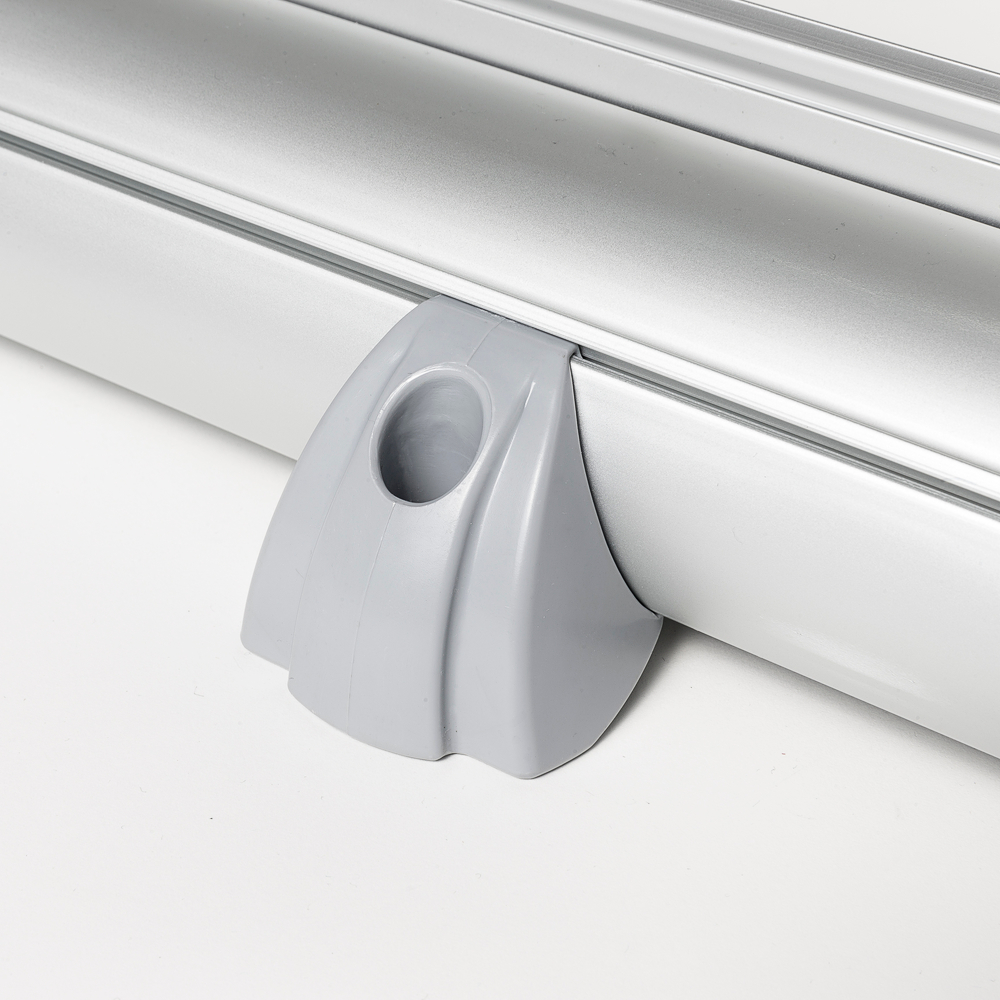 The Roll-Banner Premium is one of the most luxurious models in our range. Its high-end appearance in silver or black, accented by chrome teardrop-shaped side caps, adds elegance to any indoor setting. The stable cassette design removes the need for feet, while levelling screws at the bottom ensure firm stability. With an adjustable height from 160 to 220 cm, it adapts easily to any presentation.