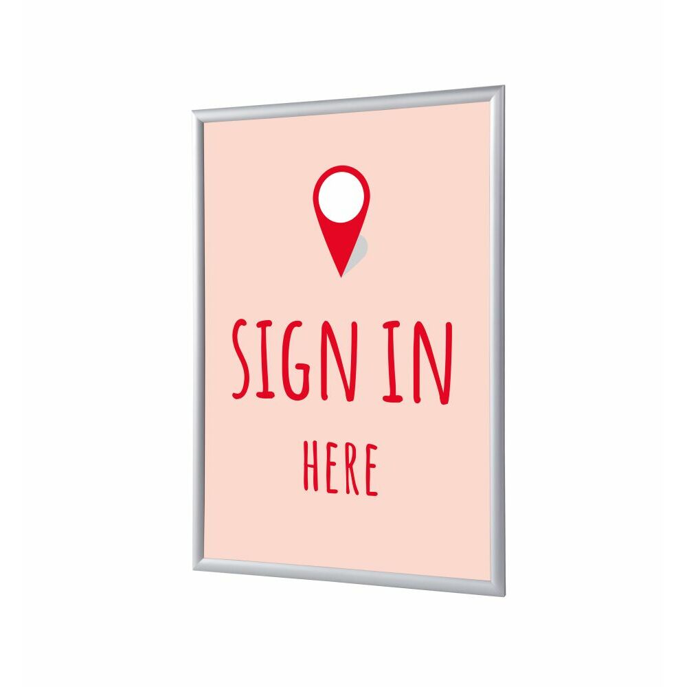 A popular Snap Frame that fits in every situation; from retail, to public spaces, schools and the hospitality sector. The Snap Frame 25 mm is a simple, but elegant and high quality poster frame with mitred corners. An excellent way for a message or advertisement on the wall. Choose your print design for your occassion. Available in A1 and A4 format.
