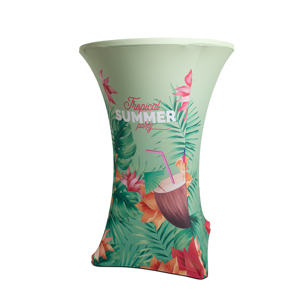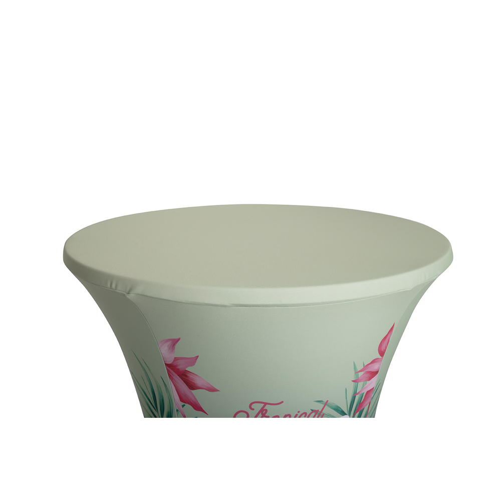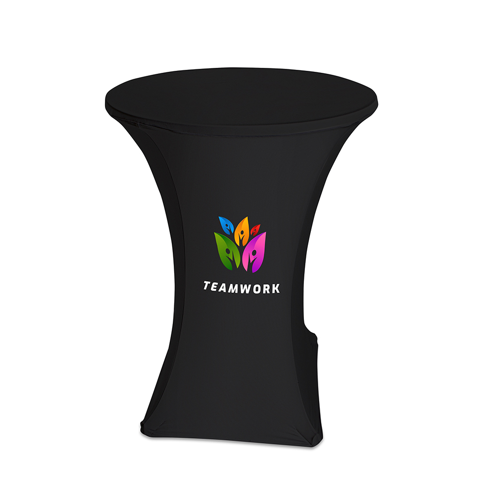 Bring your branding to life in full colour! The Table Cover Standing Round fits standard standing tables and instantly transforms any setup into a sleek, branded table. Crafted from wrinkle-free Super Power Stretch fabric, it delivers a clean, fitted look. Perfect for corporate events, exhibitions, or business gatherings. Want to impress clients? Show them exactly how their logo will look with our free graphic visualisation service.