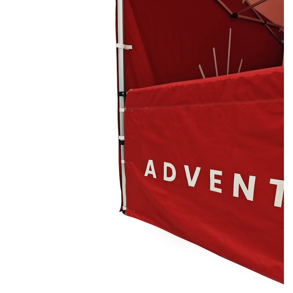 Showcase your brand, manage crowd flow, or protect your equipment with the Tent Alu Half Wall. This affordable solution lets passersby take a quick glance inside your tent while keeping your setup organised. Easy to install with Velcro straps and the Half Wall Support Bar. Display your branding on the outside — or double the impact with the double-sided print!