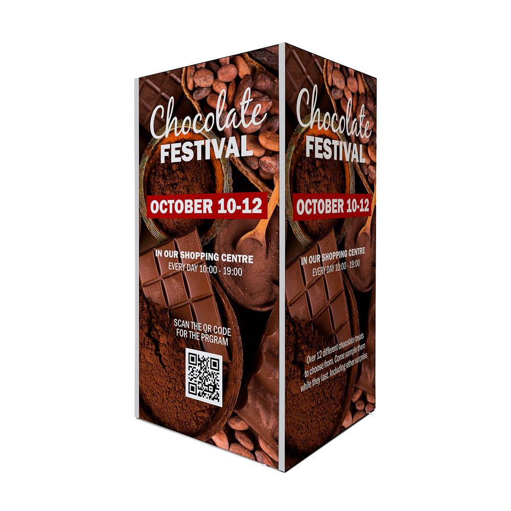 Grab attention from every angle! The Textile Frame Tower features a striking four-sided design with seamless SEG fabric integration. It sets up easily with 36 screws and 8 corner joints for a secure, stable build—perfect for any indoor space. Thanks to in-house production, custom sizes are available to match your unique display needs.