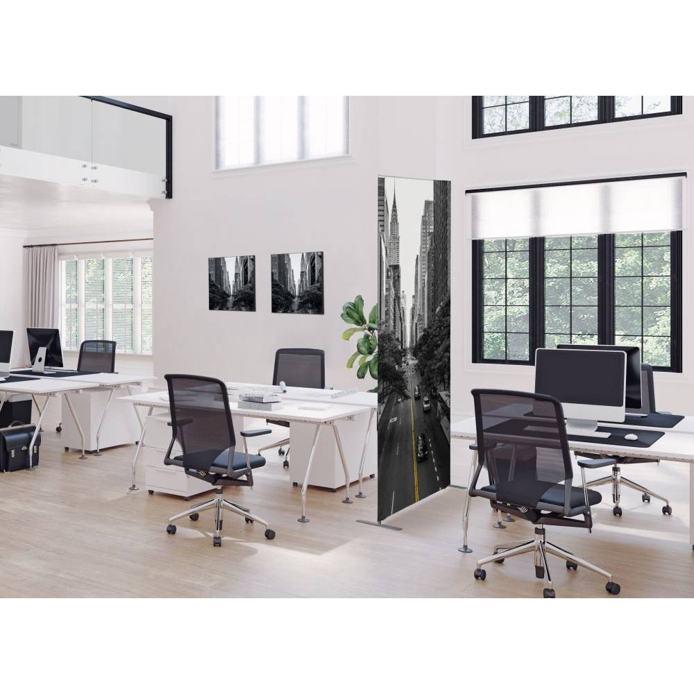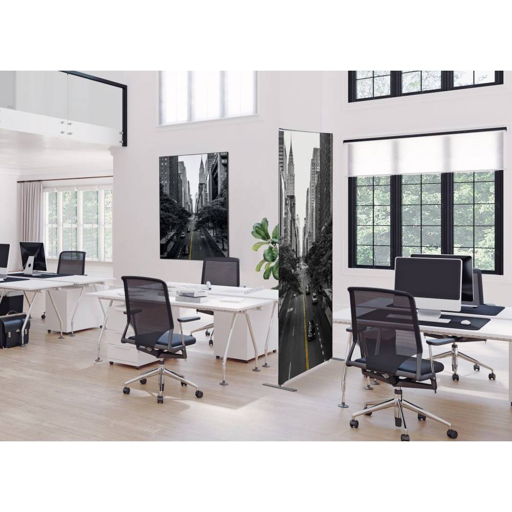 A complete set of a Textile Frame Elegant Black with a standard print design. The Textile Frame Elegant Black is perfect for decorating walls in offices or public spaces, to add more ambience. A stylish and unique black thin profile of 22 mm, holding a Silicone Edge Graphic. The Soft Knit graphic material is B1 fire rated, which makes it ideal and safe material to use in public spaces, offices or as interieur decoration. The Textile Frame Elegant Black with standard print design is delivered assembled, which means that you are ready to install the hanging solution in just a second. Use the pre-drilled fixing point and you can hang your Textile Frame Elegant Black where you want it to be. Choose the print design for your occasion.
