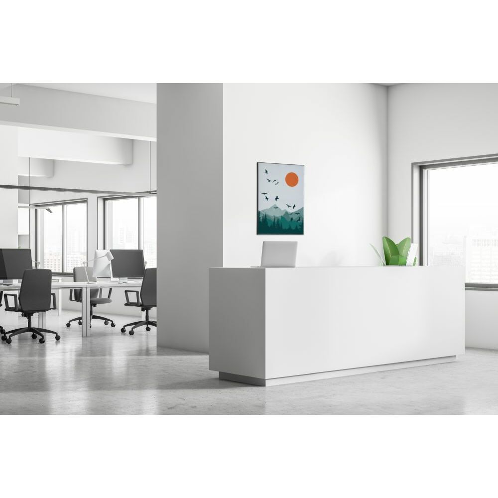 A complete set of a Textile Frame Elegant Black with a standard print design. The Textile Frame Elegant Black is perfect for decorating walls in offices or public spaces, to add more ambience. A stylish and unique black thin profile of 22 mm, holding a Silicone Edge Graphic. The Soft Knit graphic material is B1 fire rated, which makes it ideal and safe material to use in public spaces, offices or as interieur decoration. The Textile Frame Elegant Black with standard print design is delivered assembled, which means that you are ready to install the hanging solution in just a second. Use the pre-drilled fixing point and you can hang your Textile Frame Elegant Black where you want it to be. Choose the print design for your occasion.