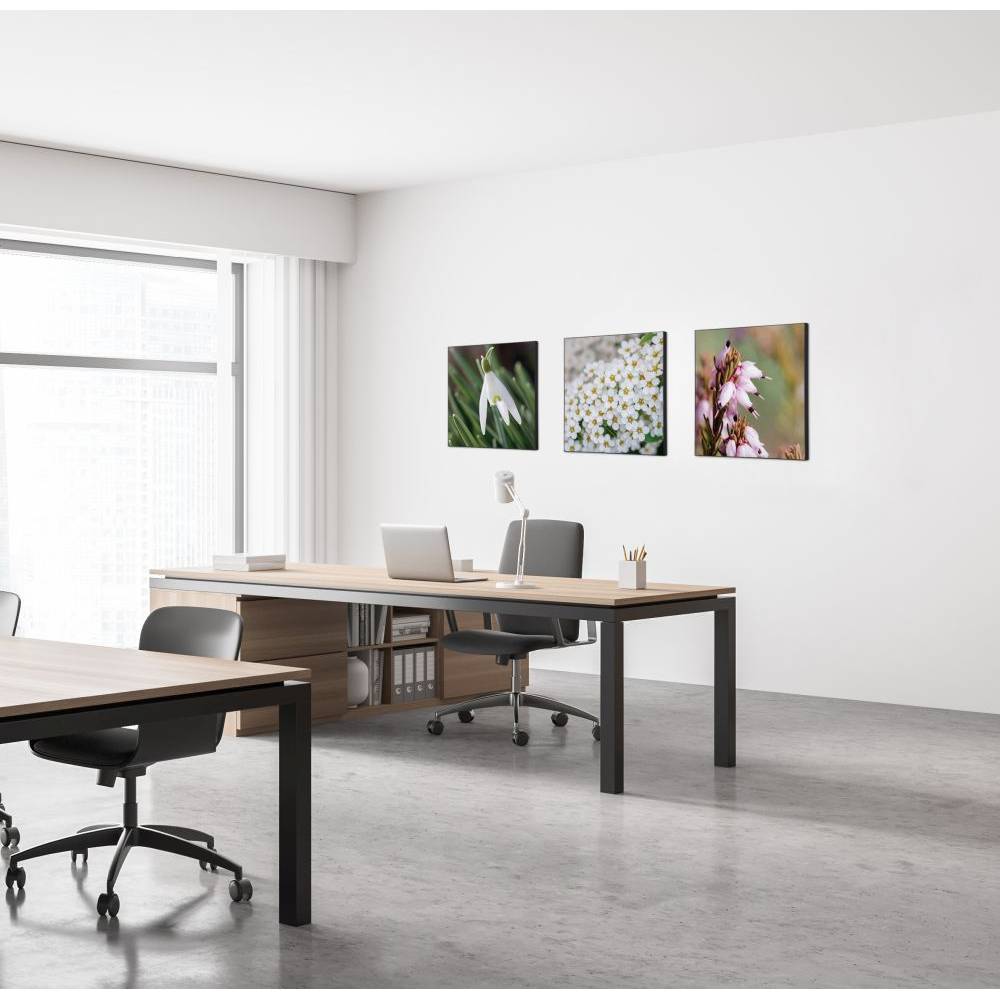 A complete set of a Textile Frame Elegant Black with a standard print design. The Textile Frame Elegant Black is perfect for decorating walls in offices or public spaces, to add more ambience. A stylish and unique black thin profile of 22 mm, holding a Silicone Edge Graphic. The Soft Knit graphic material is B1 fire rated, which makes it ideal and safe material to use in public spaces, offices or as interieur decoration. The Textile Frame Elegant Black with standard print design is delivered assembled, which means that you are ready to install the hanging solution in just a second. Use the pre-drilled fixing point and you can hang your Textile Frame Elegant Black where you want it to be. Choose the print design for your occasion.