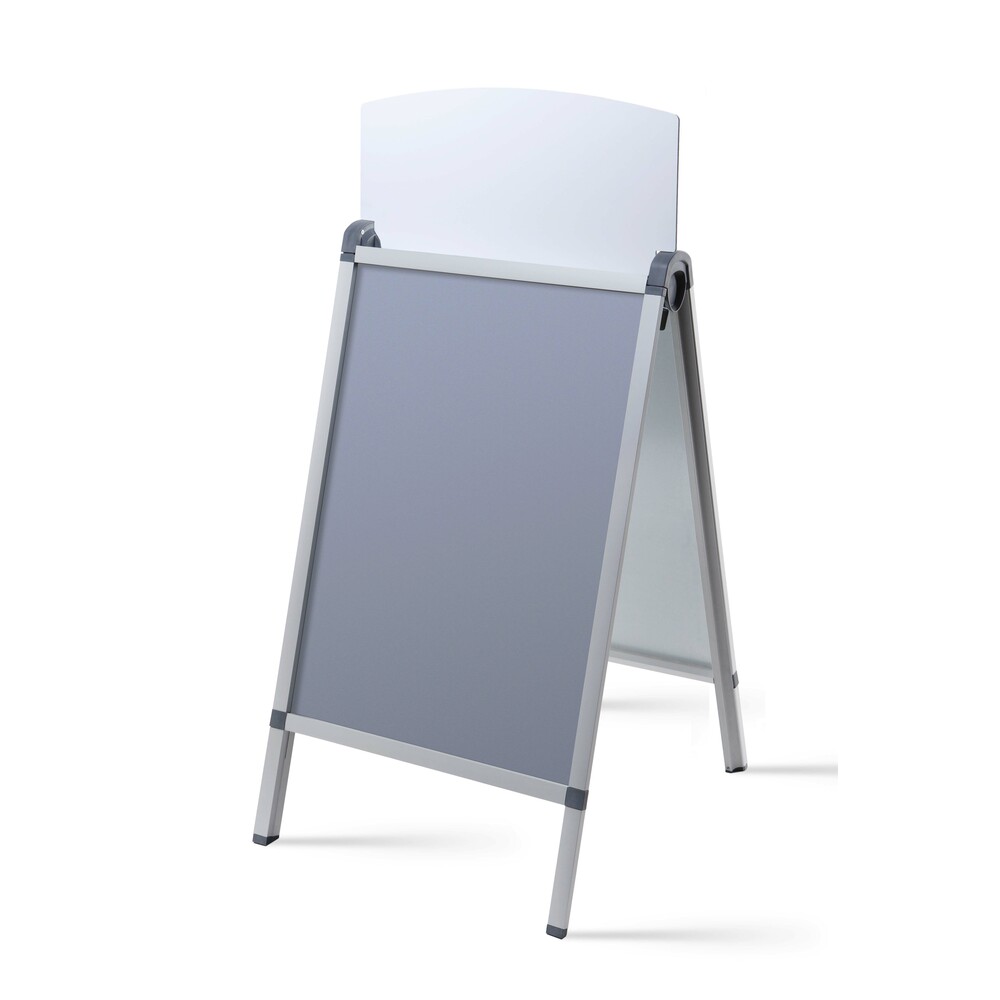 Maximise your brand visibility with our double-sided topcard solution. Effortlessly install the topcard on top of the A-Board and showcase your logo or advertisement with ease. Highlight your logo or advertisement on both sides, ensuring visibility from every direction. The topcard is designed exclusively for use with the Design A-Board Prime A1