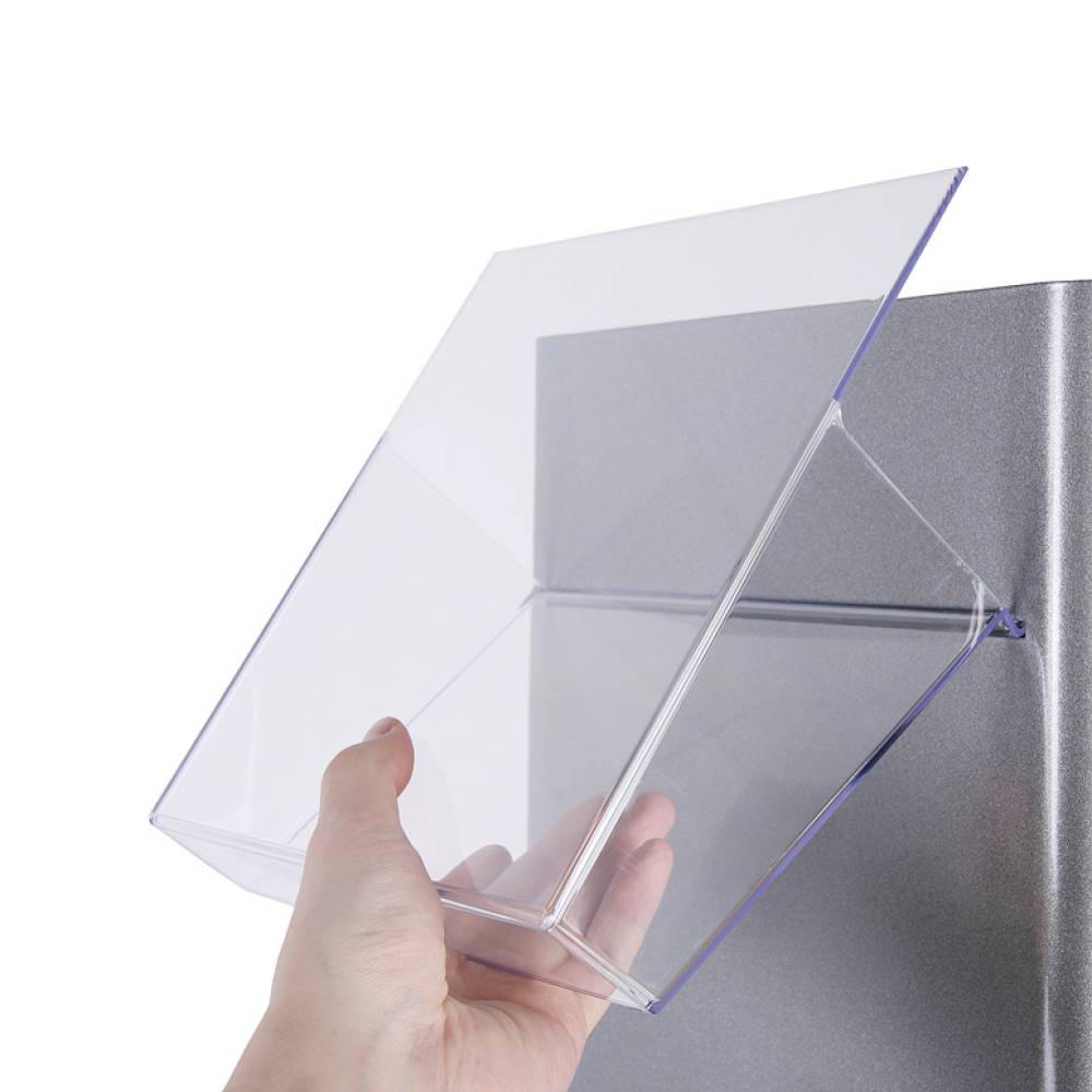 A perfect brochure stand for sharing a wide variety of literature, leaflets or brochures! The Torre Brochure Stand is a robust, stylish freestanding brochure stand, that can carry up to 12 A4 pockets. A quality steel construction with a black painted base. Organize the brochure stand according to your wishes, by ordering the shelves and pockets separately. The heavy steel base plate will make sure you can fill this totem to its maximum. A modular brochure stand with a premium look!
