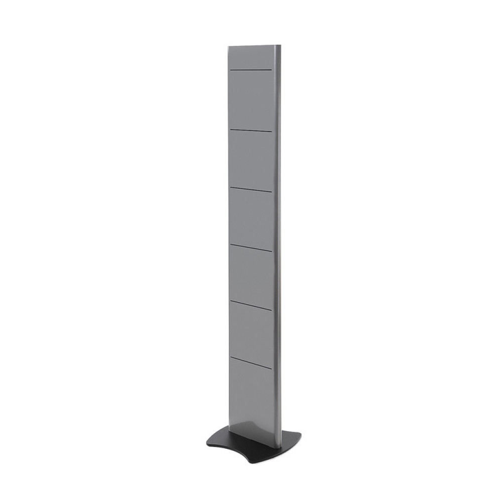 A perfect brochure stand for sharing a wide variety of literature, leaflets or brochures! The Torre Brochure Stand is a robust, stylish freestanding brochure stand, that can carry up to 12 A4 pockets. A quality steel construction with a black painted base. Organize the brochure stand according to your wishes, by ordering the shelves and pockets separately. The heavy steel base plate will make sure you can fill this totem to its maximum. A modular brochure stand with a premium look!