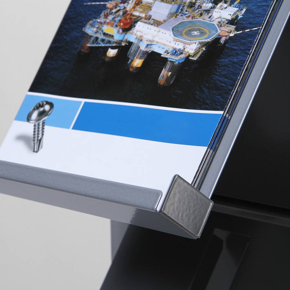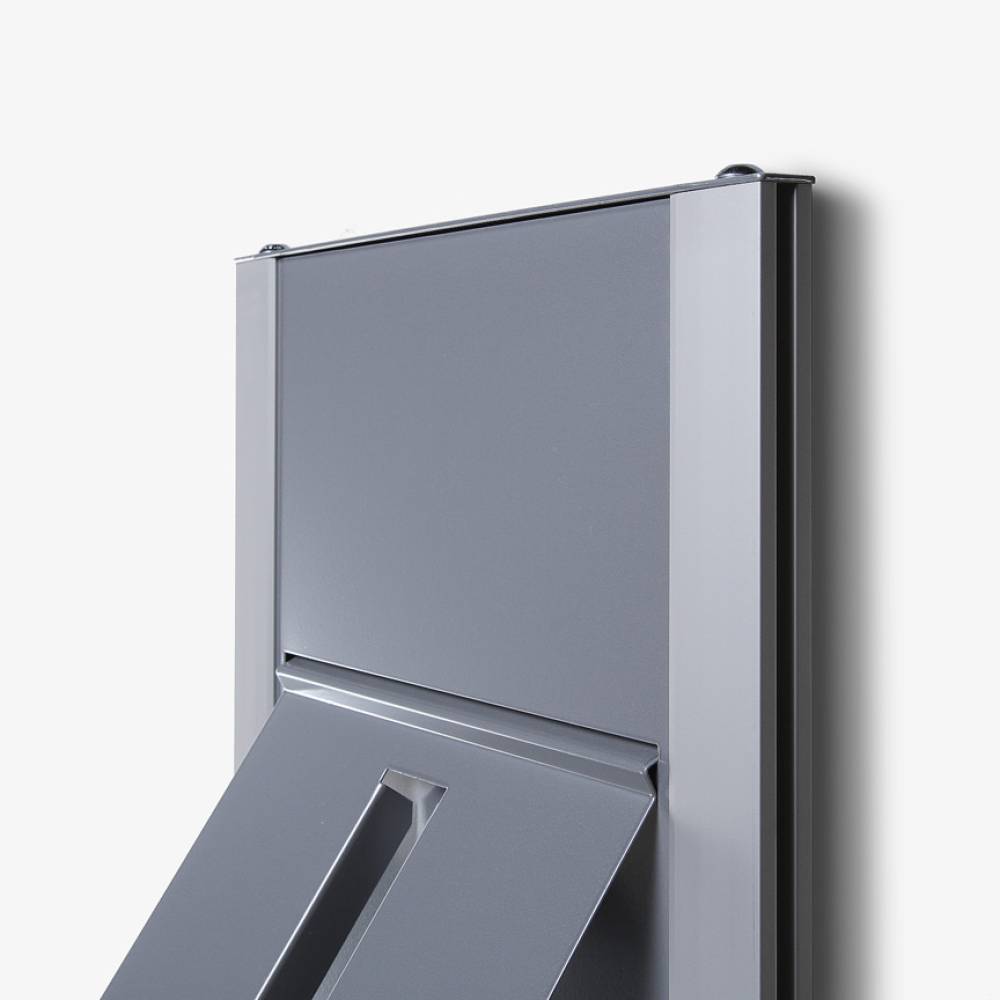 The ideal solution for a permanent option for give-away literature! The Wall Brochure Rack is a brochure rack with silver anodised aluminium edge profiles, that you can attach to your wall. Choose between metal shelves or transparent styrene pockets. Thanks to the modular options, you can organize this brochure rack according to your preferences. Choose between a black or silver version to suit your interior. A perfect brochure rack for permanent use!