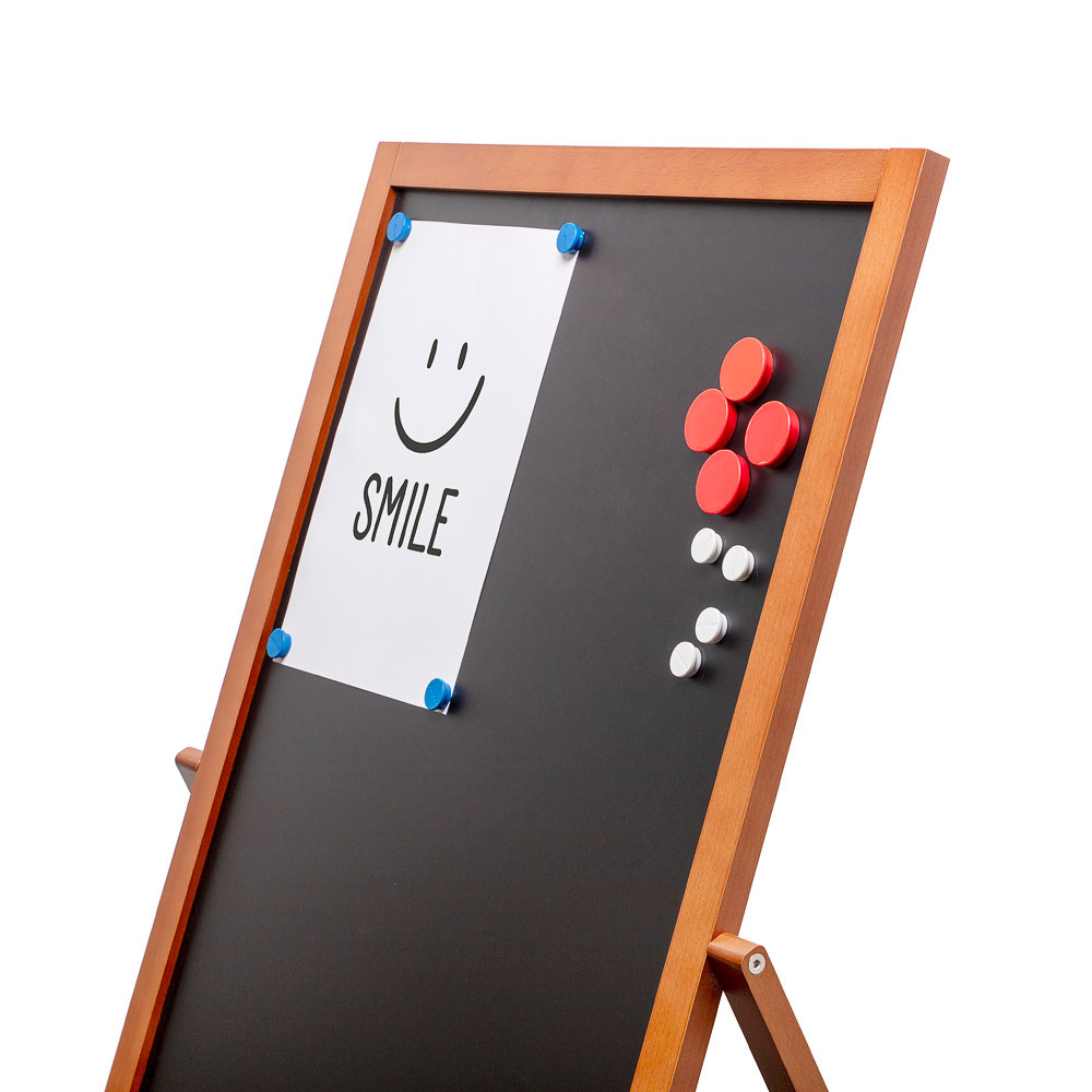 Unlike traditional chalkboards, the Wooden A-Board Flip offers a unique board twist. Write your message on both sides and flip it easily around for the right message at the right time. Crafted from durable beech wood, it combines rustic charm with everyday practicality. Choose from two distinct colours (black and brown) to seamlessly integrate it into your setting.