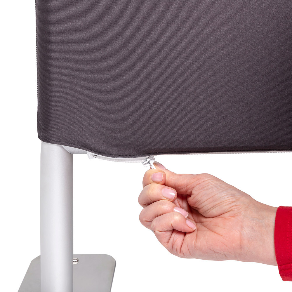 Turn crowd control into promotion! The Zipper-Barrier transforms your crowd control solution into a high-impact advertising display. Its lightweight aluminium tubes make assembly quick and tool-free - just click the tubes together and add the feet. Finish the setup with a wrinkle-free graphic that zips on at the bottom. Perfect for exhibitions, events, and public spaces.